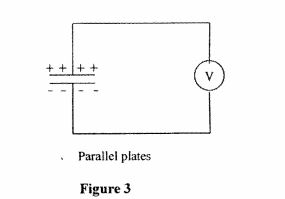 3 Figure 3, shows a voltmeter connected across two charged parallel plates.