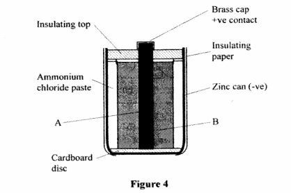Figure 4, shows the cross-section of a dry cell. Use the information on the figure to answer questions 4 and 5.
