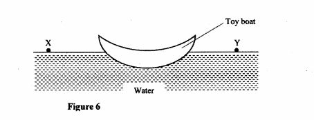 7 Figure 6 shows a small toy boat floating on water in a basin. X and Y are two points near the toy.