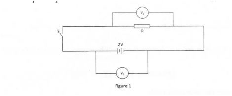 (b) With S closed, V1 reads 1.6 V. State the reading of V2. (1 mark)