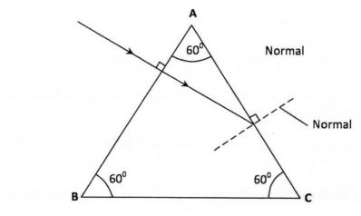 6 Figure 3 shows a ray of light passing into a glass prism ABC.