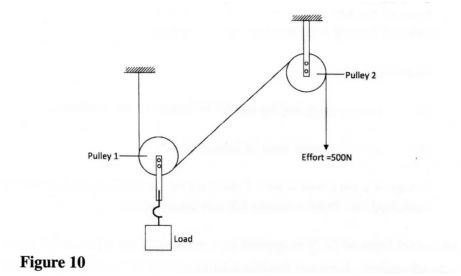 (c) Figure 10 shows a pulley system used to raise a load by applying an effort of 500 N.