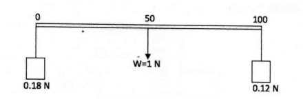 Determine how far from the 0.18 N weight a pivot should be placed in order to balance the meter rule. (3 marks)