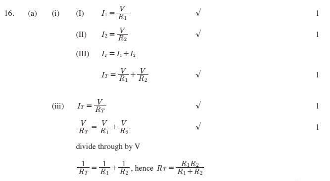 16. Figure 7 shows resistors R I and R2 connected in parallel. Their ends are connected to a battery of potential difference V volts.