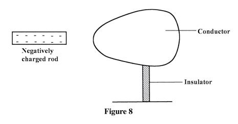 (b) Figure 8 shows a negatively charged rod placed near an uncharged conductor resting on an insulating support.