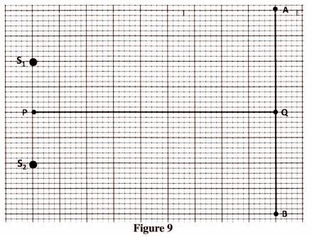 17. (a)Figure 9 shows two speakers S1 and S2 which produce sound of the same frequency. They are placed equidistant from a line AB and a line PQ. (PQ is perpendicular to line AB).
