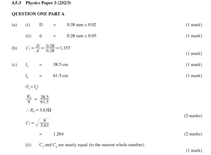 1 A student measured the length of a wire four times using a metre rule and obtained the following readings: 18.6 cm; 18.5 cm; 18.6 cm and 18.5 cm. Determine the length the student should record. (2 marks)