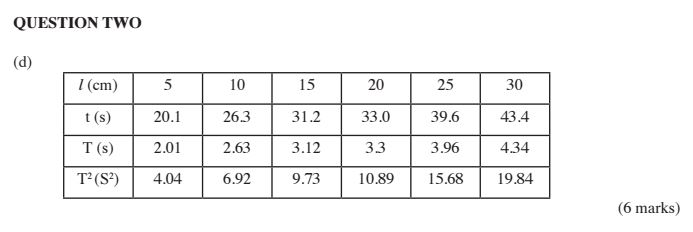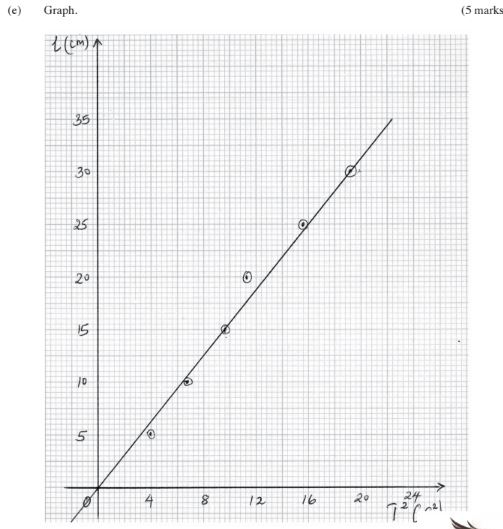 (ii) For each value of x shown in the table, determine the period T(s), correct to two decimal places, and complete the table. (The period T is the time for one complete oscillation).