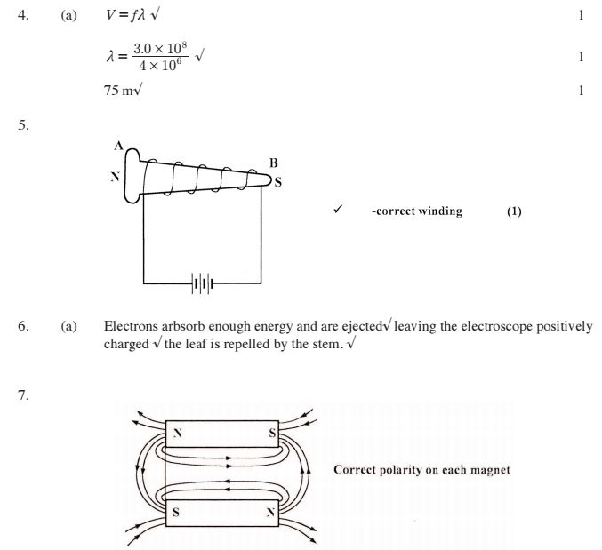 4. The frequency of an electromagnetic wave is 4.0 >< l0“ Hz. Determine its wavelength. (take speed oflighz as 3.0 >< I08ms" ). (3 marks)