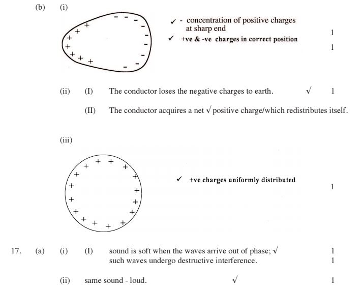 (iii) In the space provided, sketch a diagram to show how the charge in ii (II) would have been distributed if the conductor was a sphere. (1 mark)