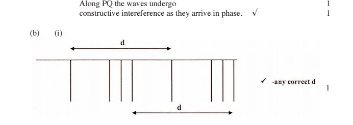 (ii) The student now Walks along line PQ. State with reason the nature of the sound the student hears. (3 marks)