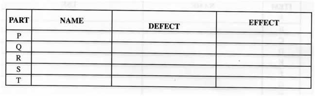 In the space below, sketch in good proportion a sectional view of a mechanical fuel pump Label four major parts. (10 marks)