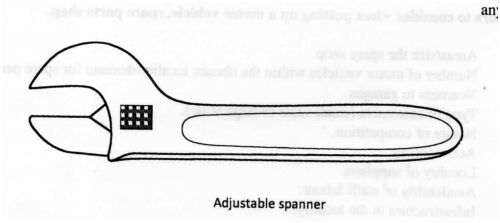 b) (i) Sketch an adjustable spanner. (1 mark) (ii) State where long nose pliers may be used in a small engine. (1 mark)