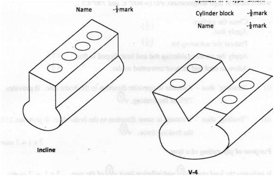 5. With the aid of sketches, differentiate between a 4 cylinder in line and a V-4 cylinder engine block. (4 marks)