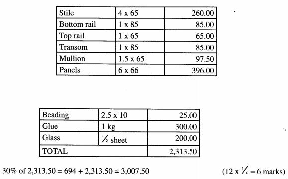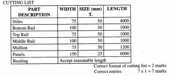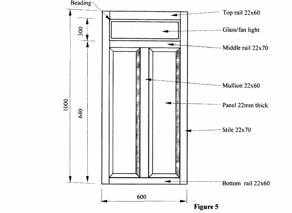 a) Prepare a cutting list for the materials required for the construction of the door. (9 marks)