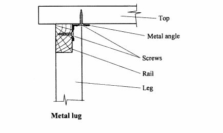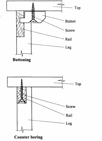 (b) Using labelled sketches, show three methods of fixing a table top to a rail.