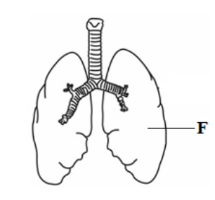 5. The diagram represents some parts of the human breathing system. Which two are functions of the part labelled F?