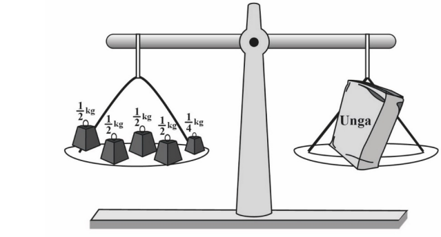 18. The beam balance shown was used to measure the mass of unga.What is the mass of unga in kilograms?