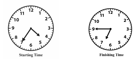 24. The two clock faces shows the starting time and finishing time of a football match.