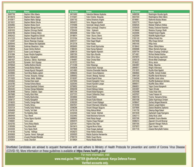 Kenya Defence Forces Shortlisted Candidates 2025 KDF Recruitment Shortlist 2025