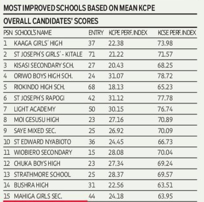 2024 KCSE Results Rankings; Most Improved Candidates and Schools (KCPE Vs KCSE)