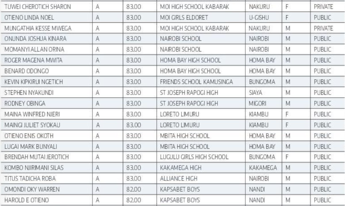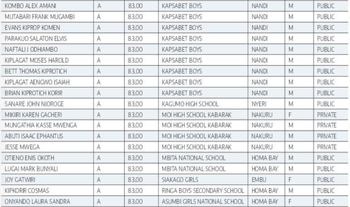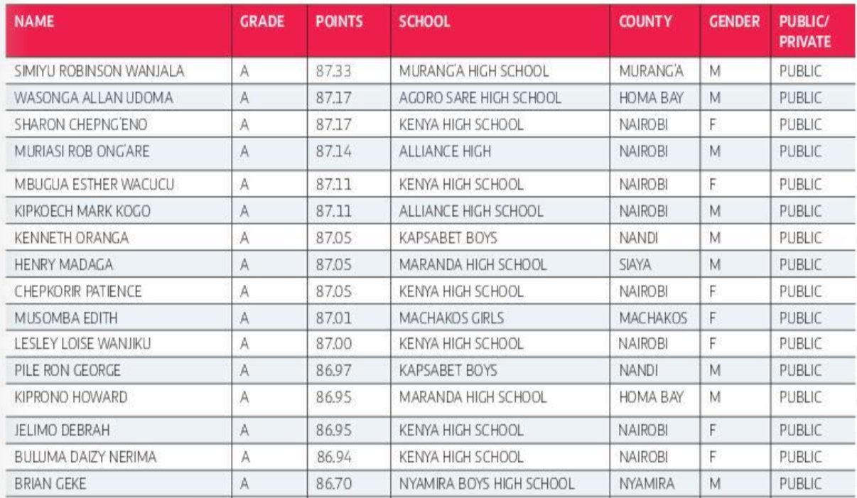 Top KCSE 2024 Candidates 2024 KCSE Results Top 500 Candidates