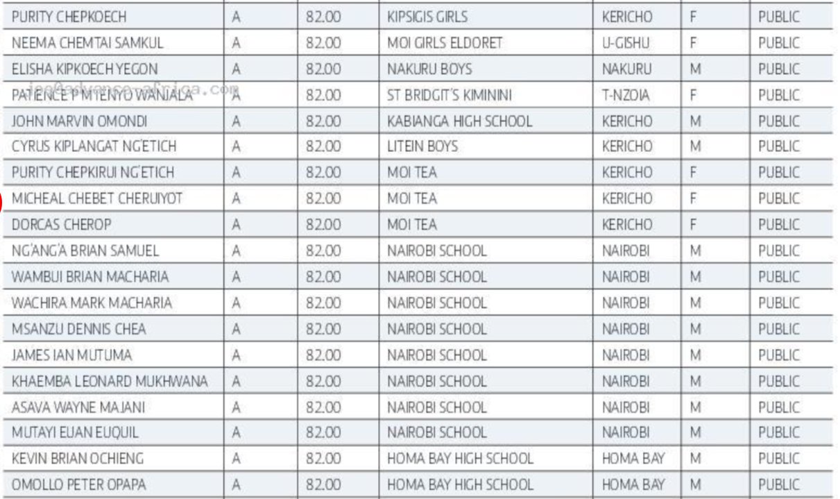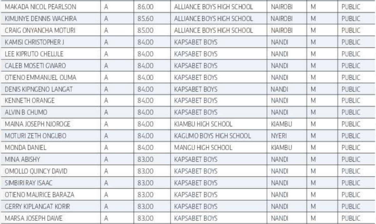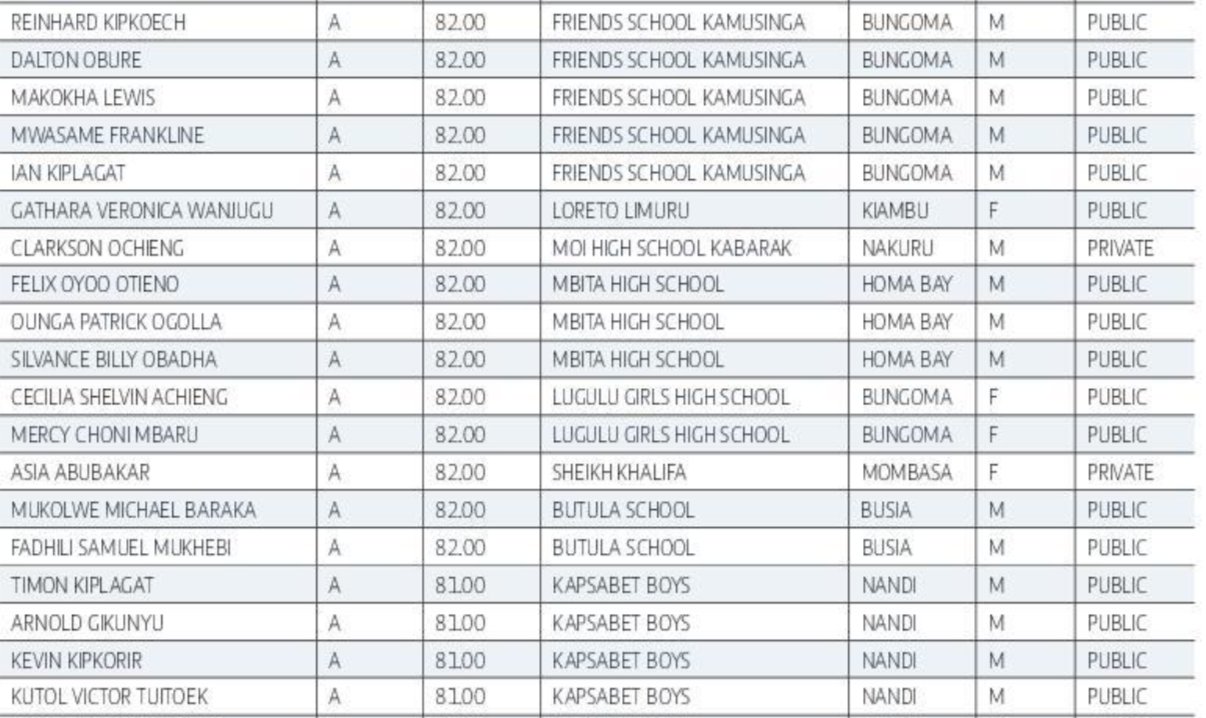 KCSE 2024: Full List of Students with A-