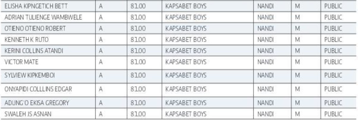 Kapsabet High 2024 KCSE Results
