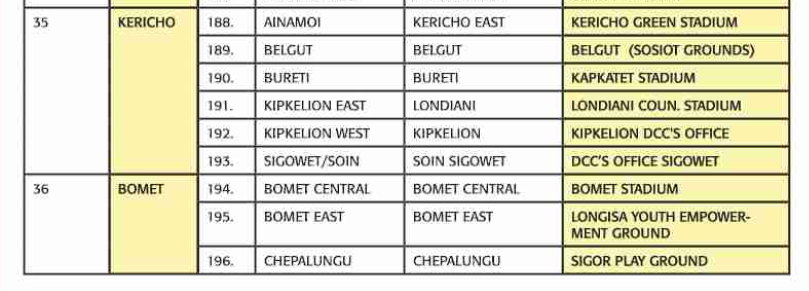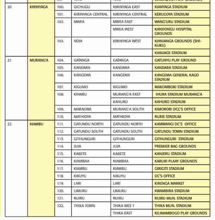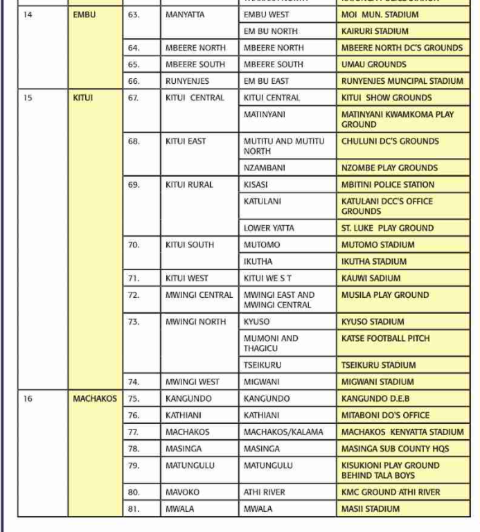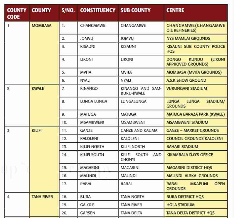 2 → → Kwale → 7 → → Kinango → Kinango and Saburu Kwale → → Vurungani Stadium