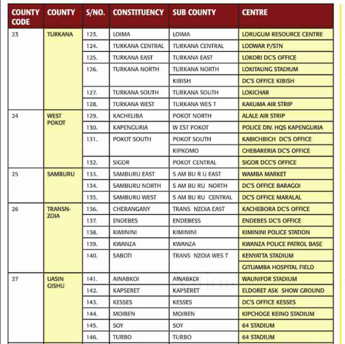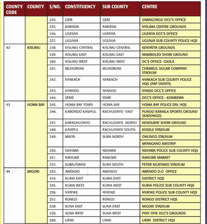 County Code → → County → S/No → → Sub county → Centre