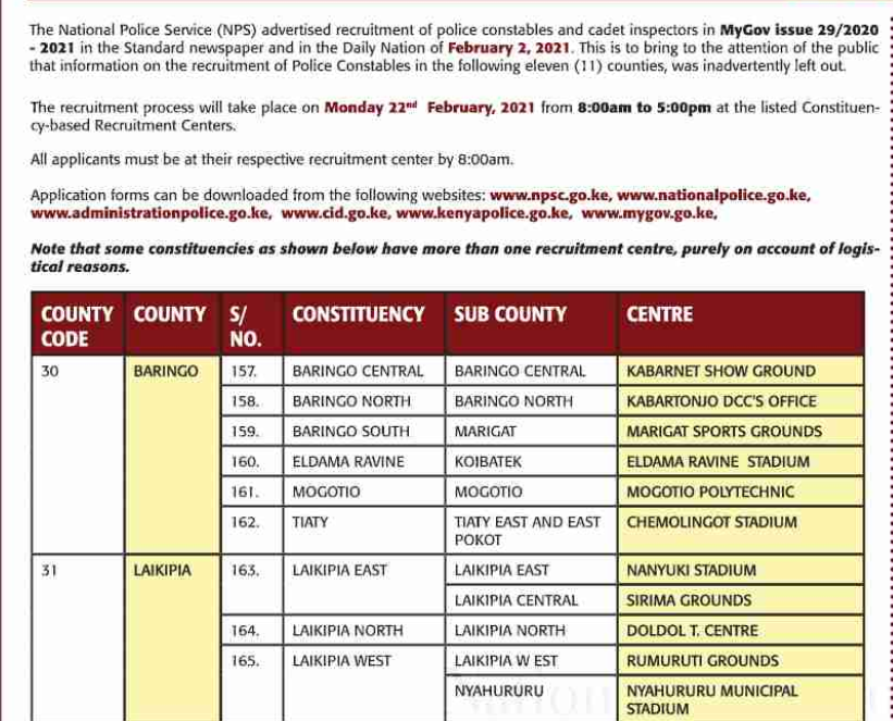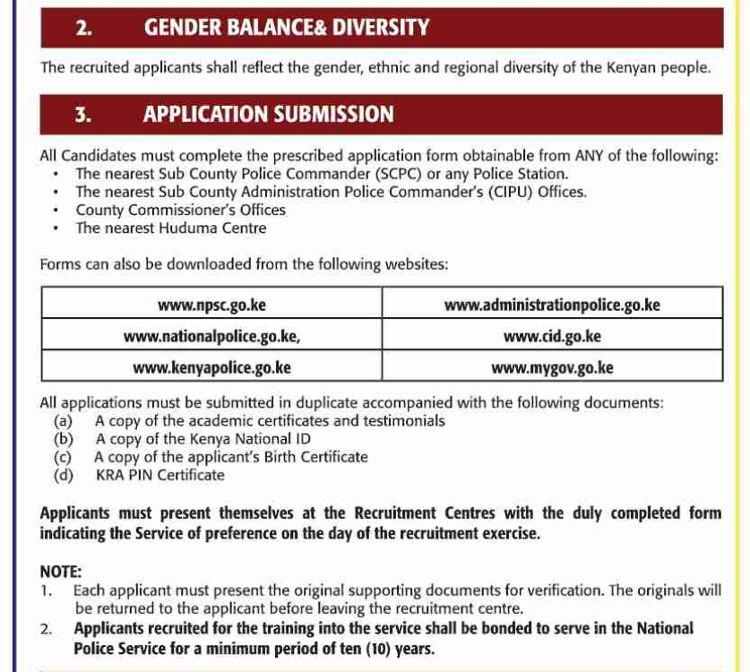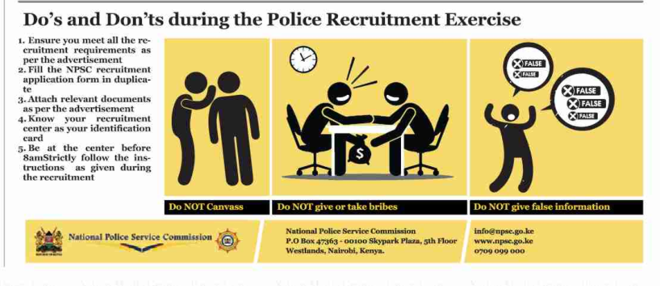 www.npsc.go.ke, www.kenyapolice.go.ke, www.mygov.go.ke, www.administrationpolice.go.ke. or www.cid.go.ke
