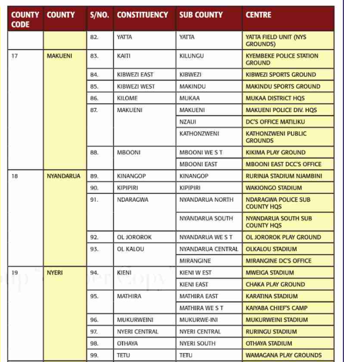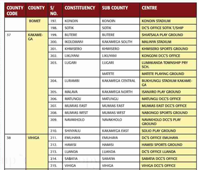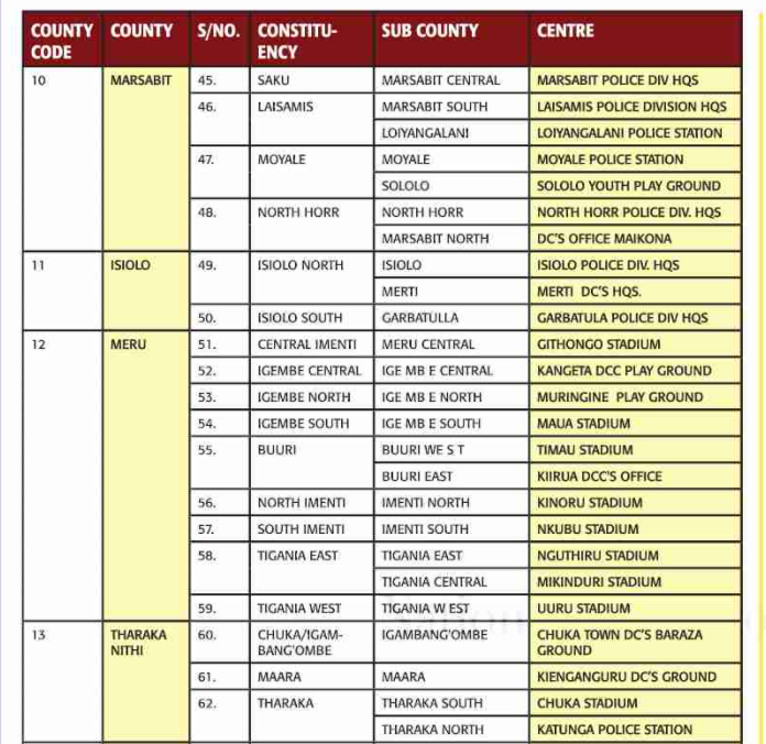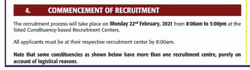 The recruitment Process will take place on Thursday 24th March 2022 starting at 8:00am to 5.00pm at the following Constituency-based Recruitment Centres.