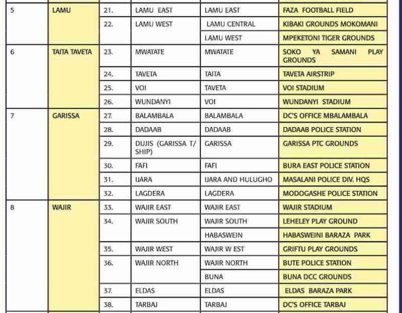 8 → → Wajir → → → 39 → → Wajir East → → Wajir East → → Wajir Stadium