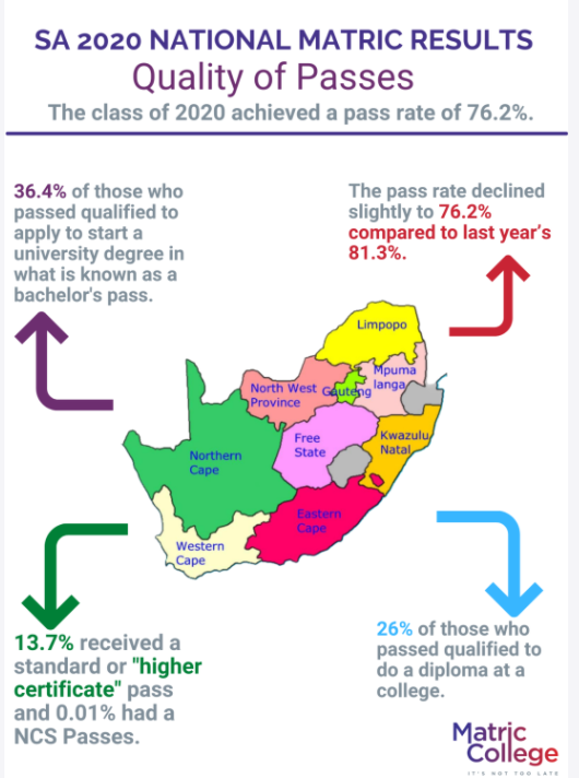 The matric results dropped from 81,3% in 2019 to 76.2% in 2020.