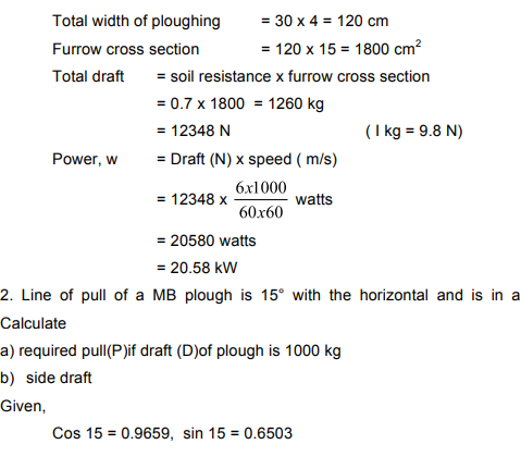 Problems1. Determine the power requirement to pull a four bottom 30 cm mould board plough working to a depth of 15 cm.