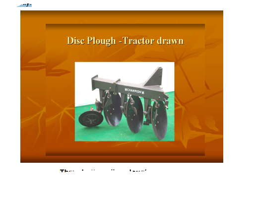 A disc plough is designed with a view to reduce friction by making a rolling plough bottom instead of sliding plough bottom as in the case of mouldboard plough.