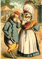 The Little Pig who had None.This was a most obstinate and willful little pig. His mother had set him to learn his lesson, but no sooner had she gone out into the garden, than he tore his book into pieces. When his mother came back he ran off into the streets to play with other idle little pigs like himself.