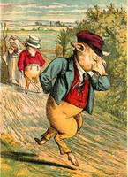 The Little Pig who Cried “Wee, wee,” all the Way Home.This little pig went fishing. Now he had been told not to go into Farmer Grumpey's grounds, who did not allow any one to fish in his part of the river.