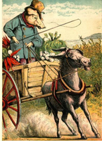 The eldest pig was so active and useful that he was called Mr. Pig. One day he went to market with his cart full of vegetables, but Rusty, the donkey, began to show his bad temper before he had gone very far on the road.