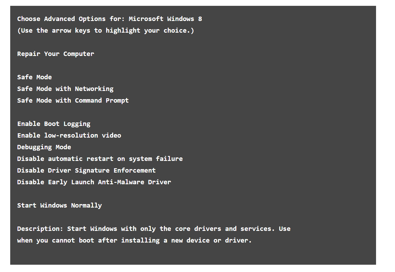 If this occurs, continuously tap F8 upon startup, rather than holding it.