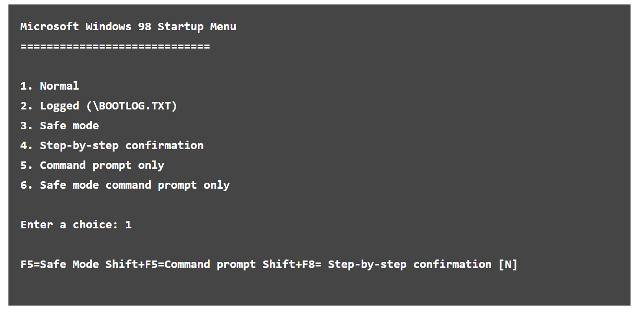 If done properly, you should see the "Windows 98 Startup Menu" or "Windows ME Startup Menu" screen, similar to the example below. In this menu, choose option 3 by pressing the 3 key and then pressing Enter.