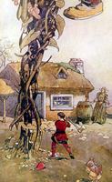 The giant woke up and saw Jack with the harp. Furious, he ran after Jack. But Jack was too fast for him. He ran down the beanstalk and reached home. The giant followed him down.