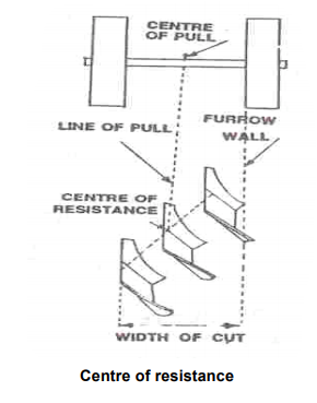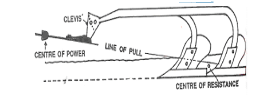 f) Line of pull: It is the line passing through the centre of pull, the hitch point and centre of resistance
