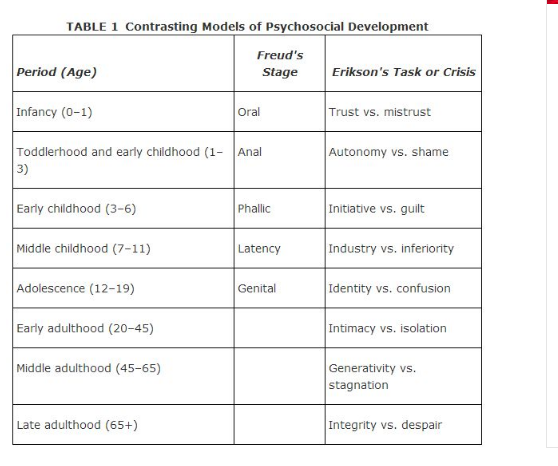 (Table contrasts Erikson's model of psycho‐social development with Sigmund Freud's model.)