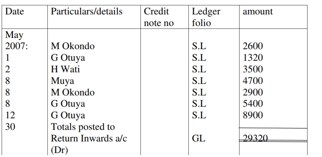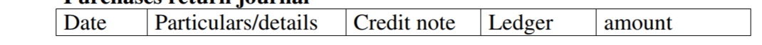 It uses the credit note received as the source documents, with the totals being in the purchases return account while the individual creditor’s accounts are debite in their respective ledger accounts.