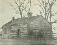 The little log house, with its chimney of sticks, its roof of warping clapboards weighted with traversing poles and its "chinking" of clay, had a single door and, directly opposite, a window.