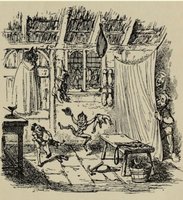 One morning when she was just going back to her work, she found a letter on this heap, and as she could not read, she put her broom in the corner, and took the letter to her master and mistress, and behold it was an invitation from the elves, who asked the girl to hold a child for them at its christening.