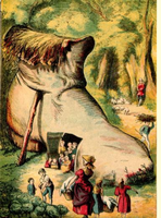 Night came on, and as the father did not return, the Old Lady and her family went to search for him. When they came to that part of the wood where the Giant had met their father, they saw an immense shoe.