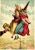 The Old Witch then took the little Old Lady on her broom, and they sailed off through the air, straight to the Giant's castle.