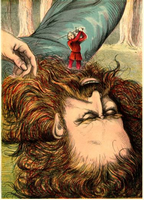 Strong-arm said he had come to liberate his father, who was kept a prisoner by the Giant; on this the little man said he was sorry for him, because the part of the castle in which his father was kept was guarded by a large dragon.